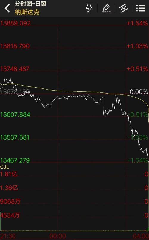 美股三大指数集体下挫。截至当天收盘,道琼斯工业平均指数比前一交易日下跌76.85点,收于34440.88点,跌幅为0.22%;标准普尔500种股票指数下跌41.75点,收于4402.20点,跌幅为0.94%;纳斯达克综合指数下跌209.06点,收于13469.13点,跌幅为1.53%。