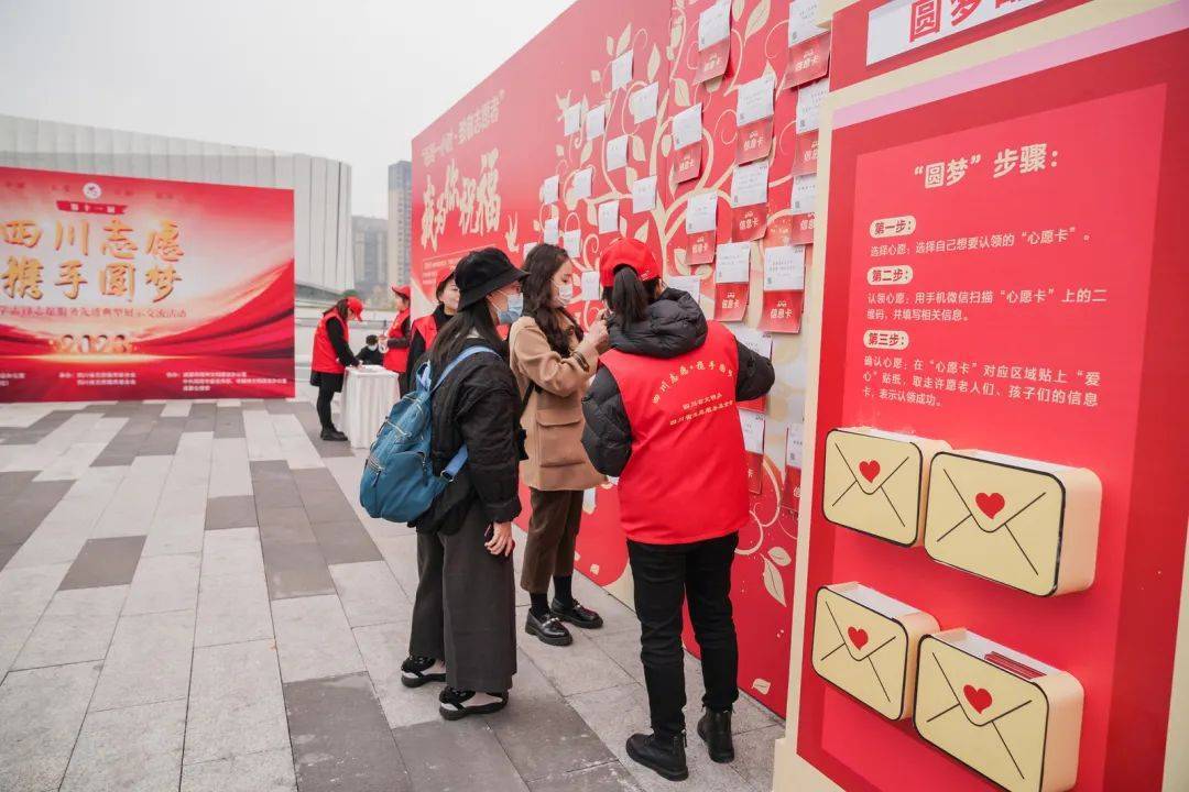 在“四川志愿·携手圆梦——我为你圆梦”互动区,到场嘉宾及群众纷纷选择“心愿卡”,扫描“心愿卡”上的二维码,填写自己的基本信息并提交,即成功认领心愿。线上,这些心愿也将通过四川志愿微信公众号的“携手圆梦”栏目发出。善举在这里发生,温暖在全省传递。
