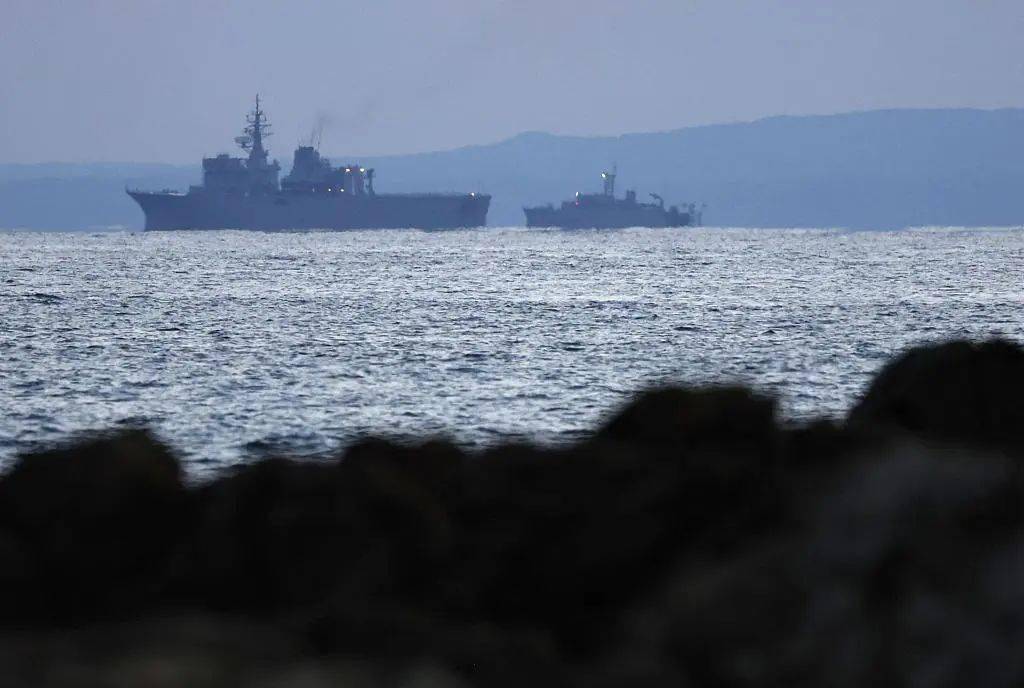 当地时间12月4日,日本鹿儿岛县,一艘日本海上自卫队船只正在搜寻坠毁的美军“鱼鹰”运输机。