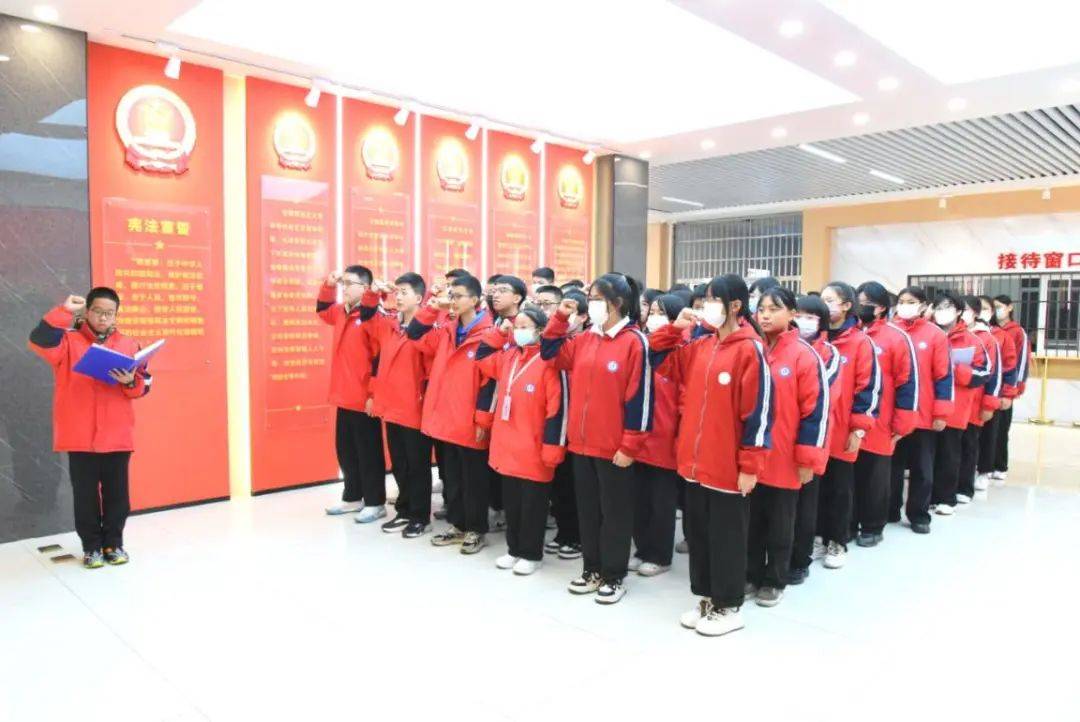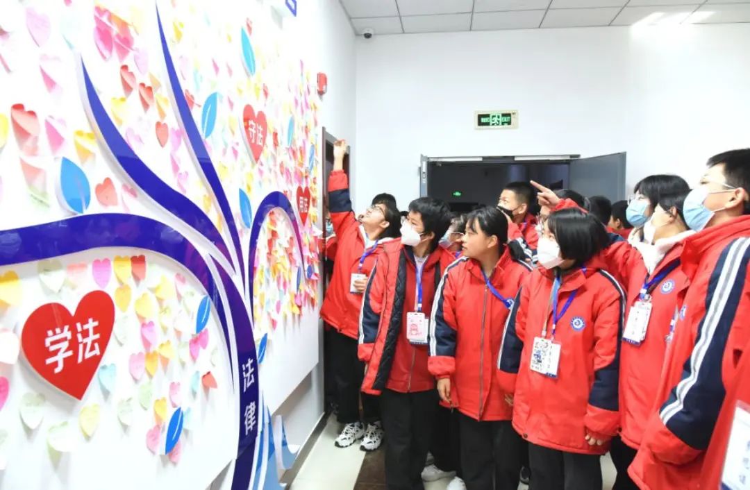 在拘留所民警的带领下,师生们在宪法宣传大厅详细学习了宪法的重要意义、习近平法治思想等内容,了解了拘留所的职能作用、“枫桥经验”的重要意义和“桥文化”的精神内涵。并参观了法治文化长廊,观看了专题警示教育片,引导广大未成年人知法守法、遇事找法、解决问题靠法。