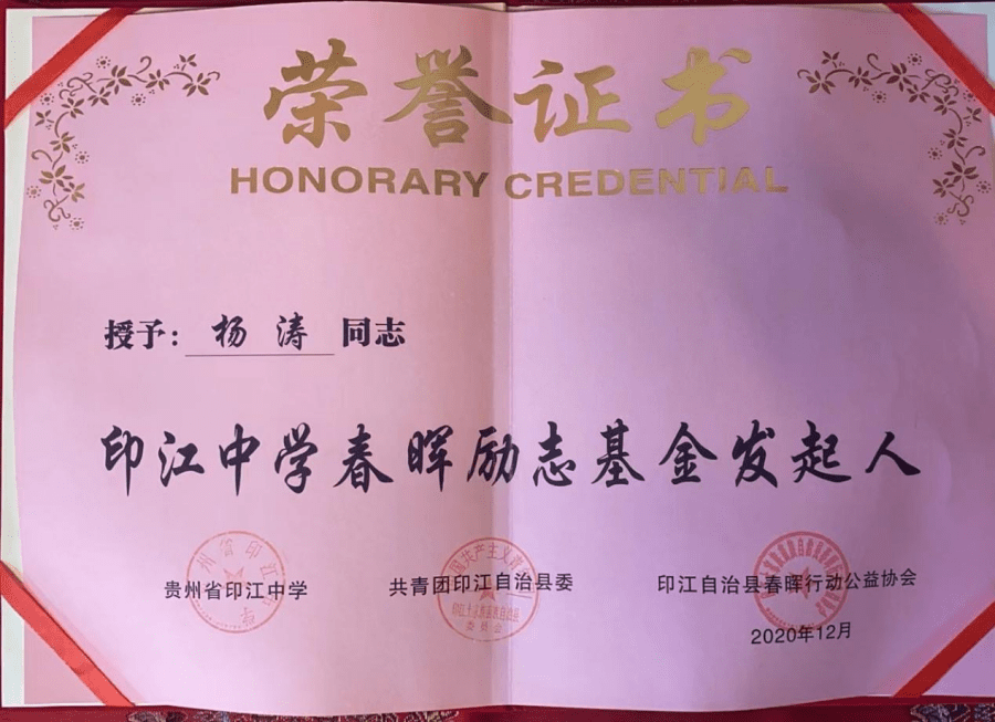 央广网:您先后被贵州省礼聘为“春晖使者”、评为贵州省印江县首届“印江十大杰出青年”、贵州省“印江自治县招商大使”、“印江自治县文旅推荐官”等,也一直投身公益事业,鼓励您一直奉献的动力是什么?