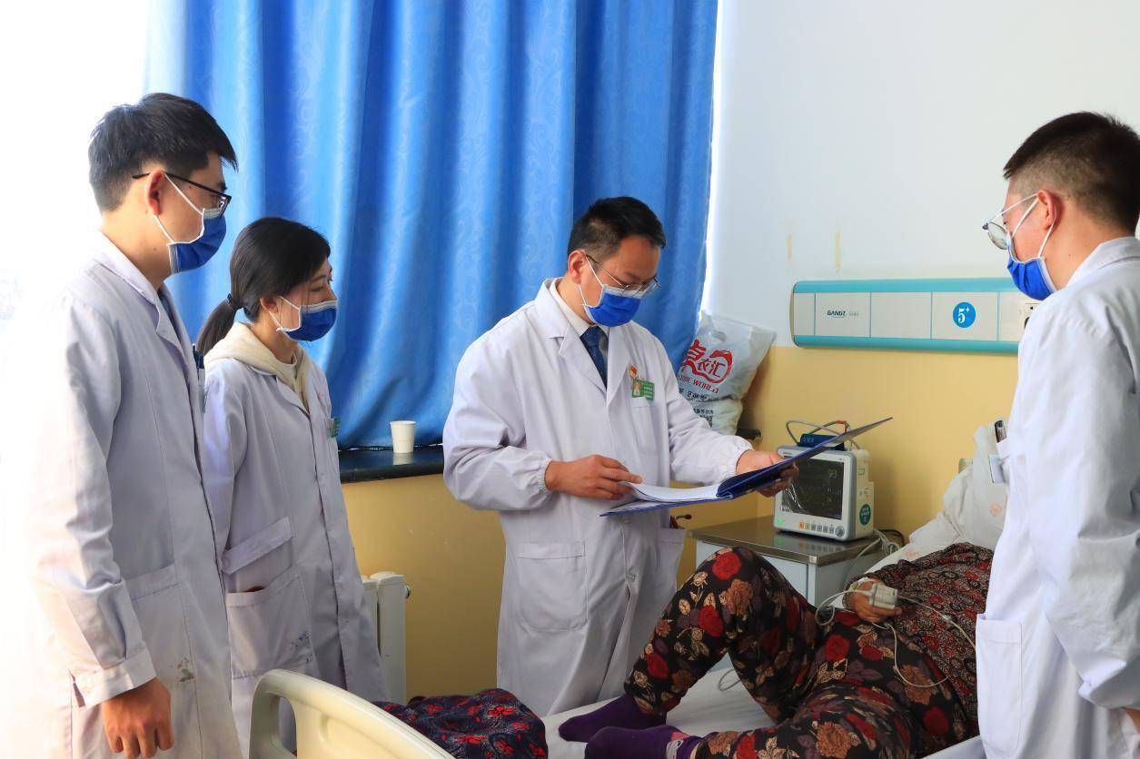 福建附一帮扶专家吴达文详细询问患者的病情和病史,查看病历。