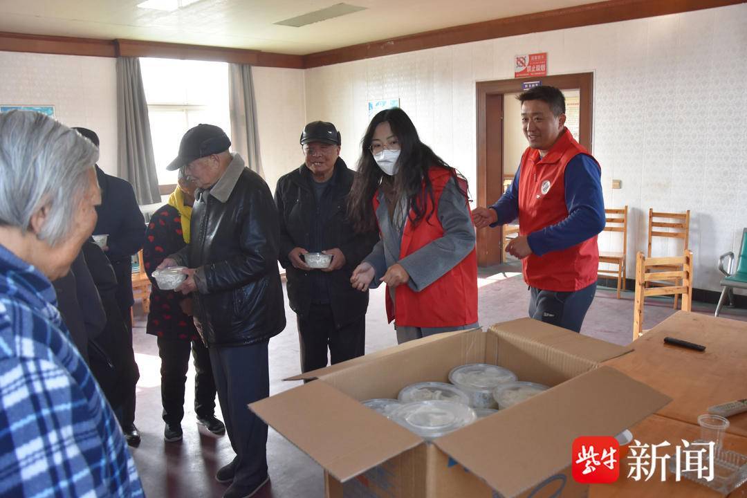 需要送饺子的老人以戴南镇区附近的老人为主,年龄都在80周岁以上,且绝大多数独居,他们之前都是由澍缘养老服务中心的爱心人士马勇来负责送餐。随后,志愿者们跟随着马勇的爱心送餐车,将一碗碗冒着热气的饺子送到一位位老人手中,老人们都感动不已。