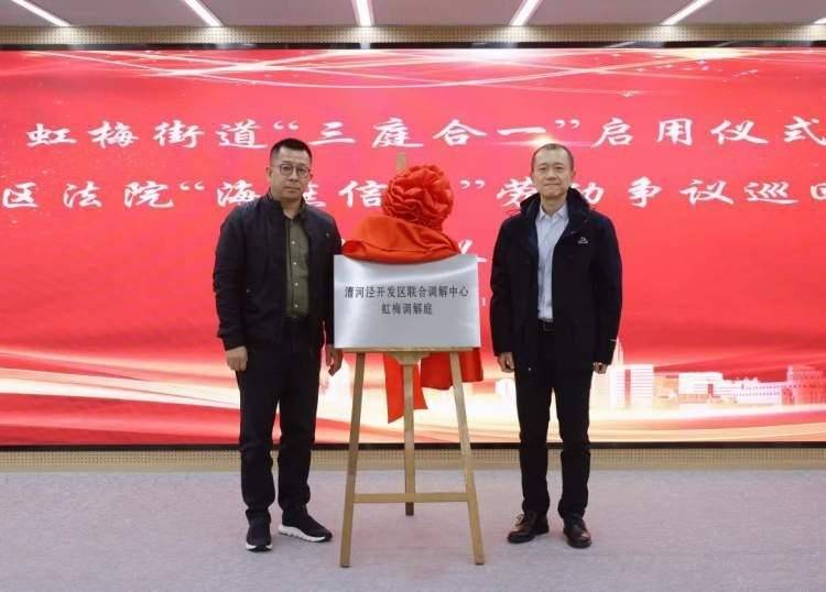 在徐汇区虹梅街道,需要调解、仲裁、判决服务的居民不必再专门前往大型机构,如今他们在社区里就能找到解决问题的平台。12月初,虹梅街道在全州路10号举行了虹梅街道“三庭合一”启用仪式暨徐汇区法院“海燕信箱”劳动争议巡回审判站揭牌仪式,将为辖区居民、企业提供专业的法律服务。这也标志着,虹梅街道在优化漕河泾开发区法治营商环境、构建和谐法治园区方面迈出了坚实的步伐。