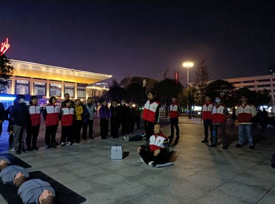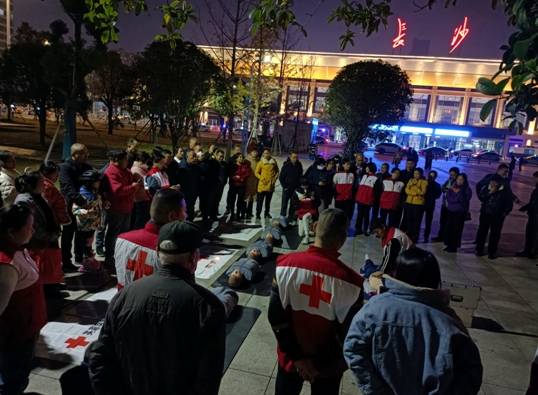 12月4日晚,长沙市火车站事务中心前坪锦泰广场一个特殊摊位吸引了大量过往行人。湖南省红十字会组织全国救护大赛湖南代表队队员和芙蓉区红十字会的应急救护师资们当起了“摊主”,摆起了“公益急救地摊”,义务为过往行人传授应急救护专业知识和技能。