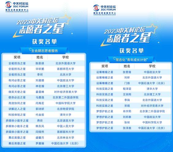【2023中关村论坛志愿者之星获奖名单】