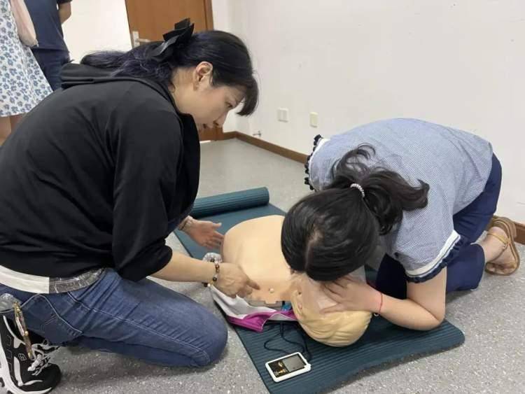“在心肺复苏按压的过程中,手掌只能持续按压双乳连线的中间位置,而且手掌是不能离开身体接触点的,否则你的按压就起不到任何效果。”培训中,老师耐心细致地教学,详细讲解动作要领,并对不规范动作现场及时进行指导纠正。