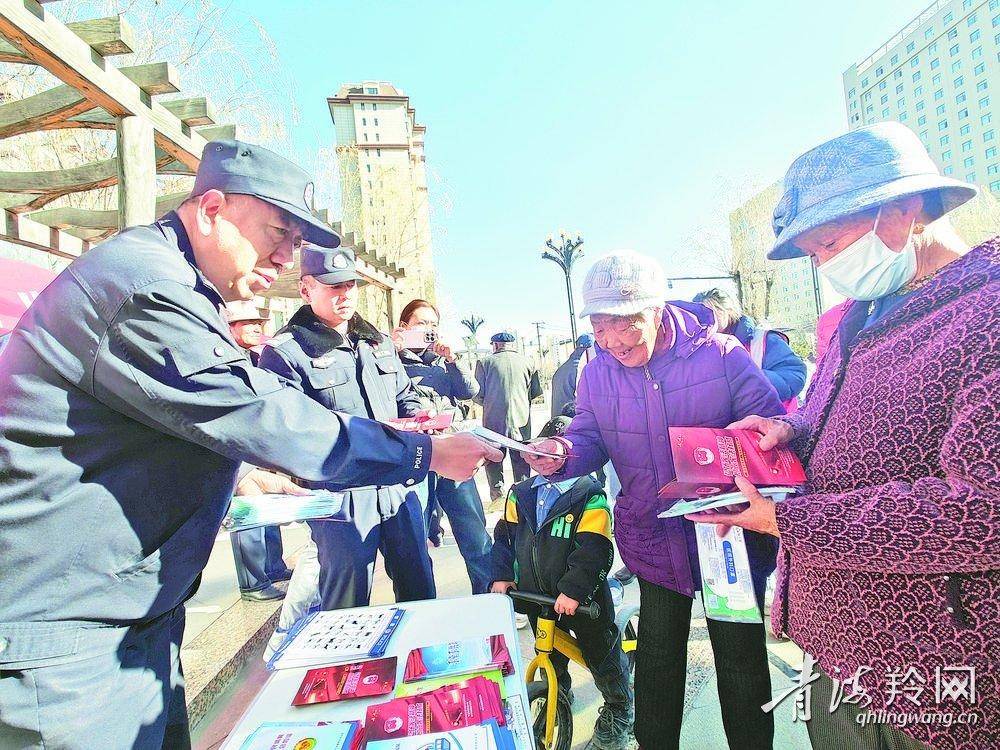 派出所民警向居民发放宣传手册。本报实习记者 杨红霞 摄