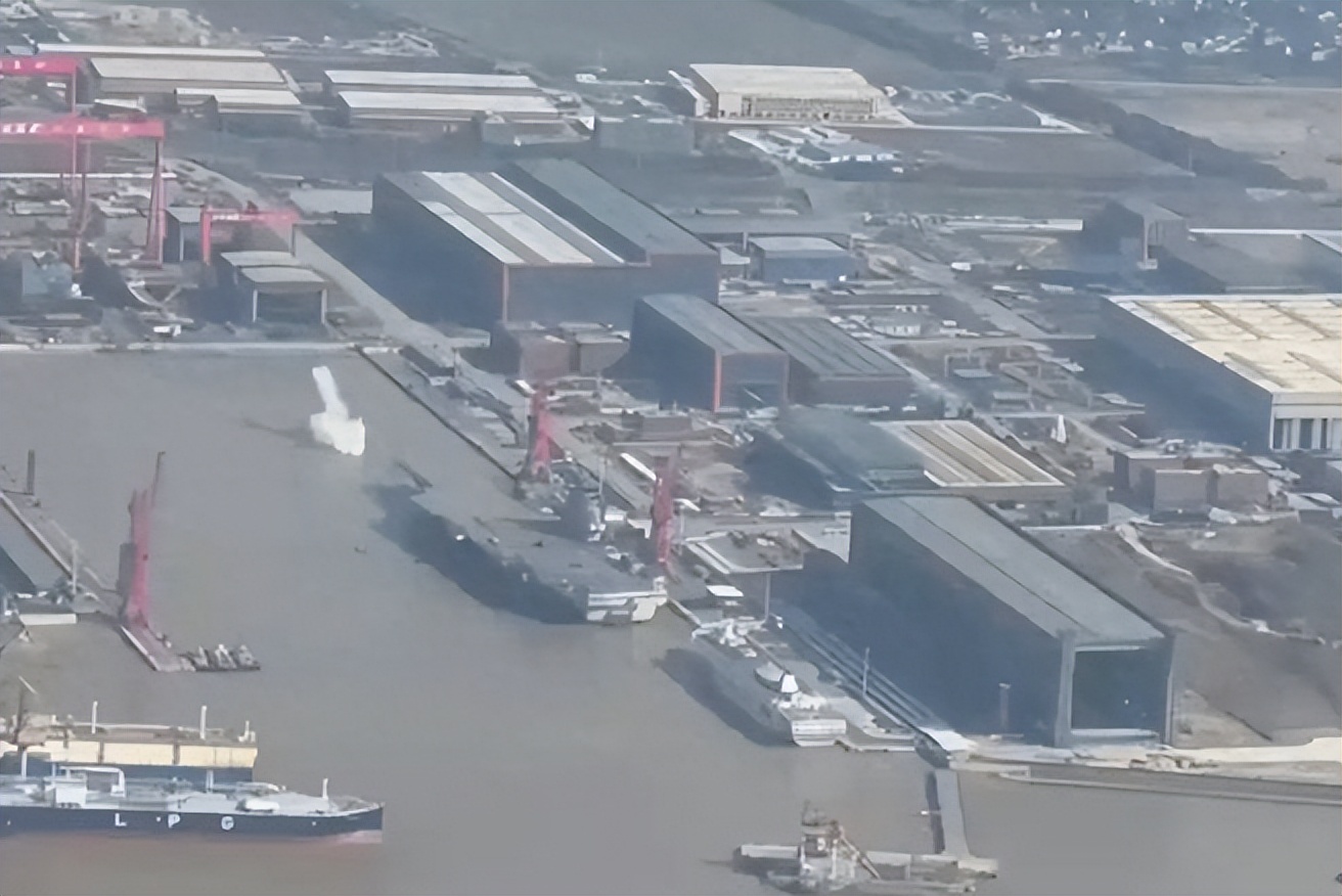 最近,网络流传出一张照片,当中可明显看出:福建号航母003正前方约100米远的位置,出现了一大团水花。