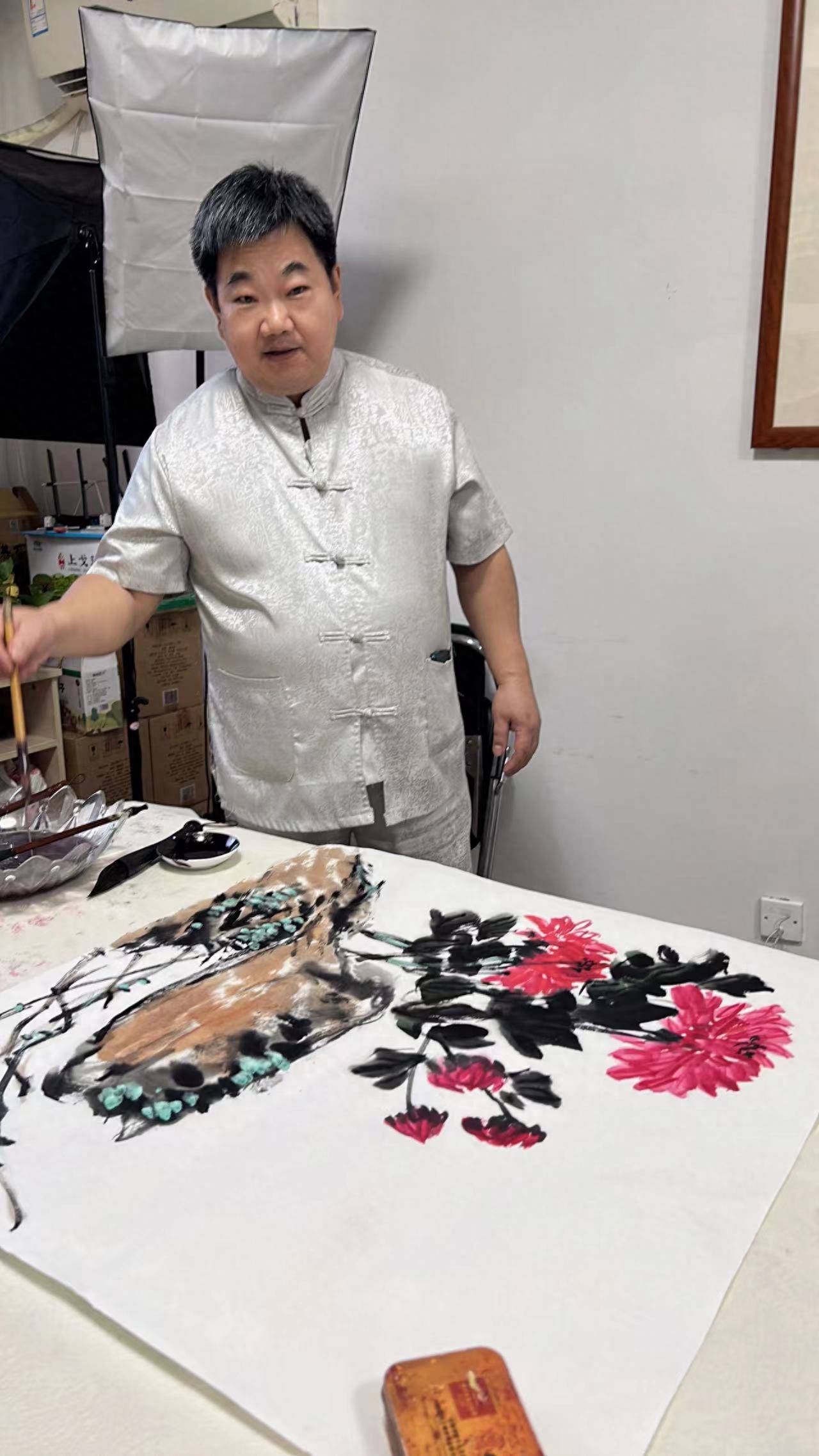 笔会现场气氛热烈,书画家们以“迎中秋、庆国庆”为主题,挥毫泼墨,激情创作。书法作品或雄浑厚重,或刚柔并济;国画作品或栩栩如生,或匠心独具。将近三小时的活动中,大家一边创作,一边交流心得,谈笑间,共计几十幅苍劲有力的书法作品和气势典雅的国画作品渐次展现在大家面前,整个大厅洋溢着浓厚的文化氛围,寄托了对祖国以及对亲人的浓浓祝福。