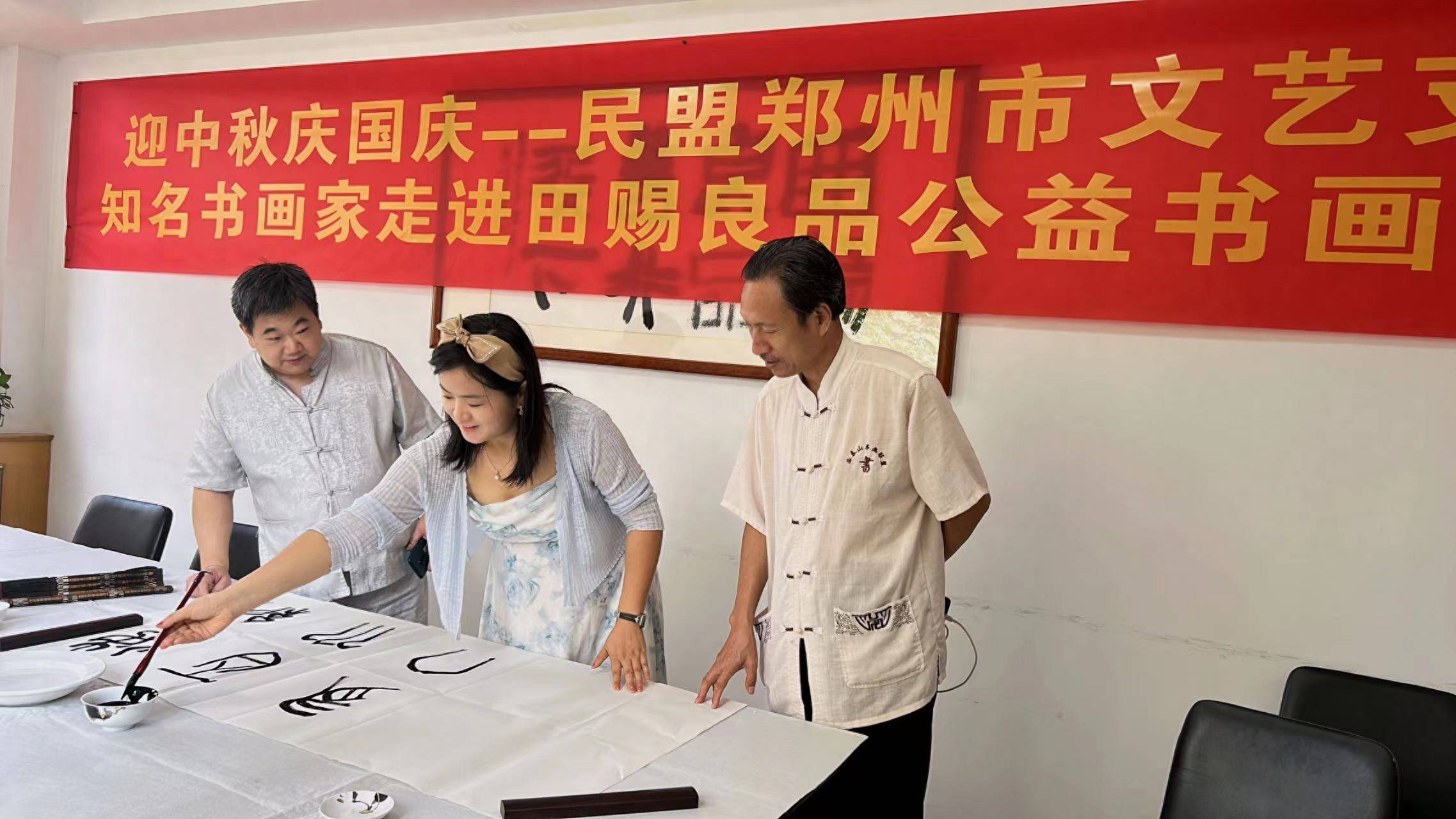 (本网讯:刘增利报道)金秋送爽,丹桂飘香。九月的轻风,像一个神奇的丹青妙手,泼墨出一帧多彩的图画,为了弘扬中华传统文化,表达对祖国的美好祝福,在中秋、国庆双节来临之际,河南省鑫都文化艺术教育发展研究院院长王永军带领书画院知名书画家于9月7日下午,走进田赐良品公司举办“迎中秋、庆国庆”公益书画笔会活动。