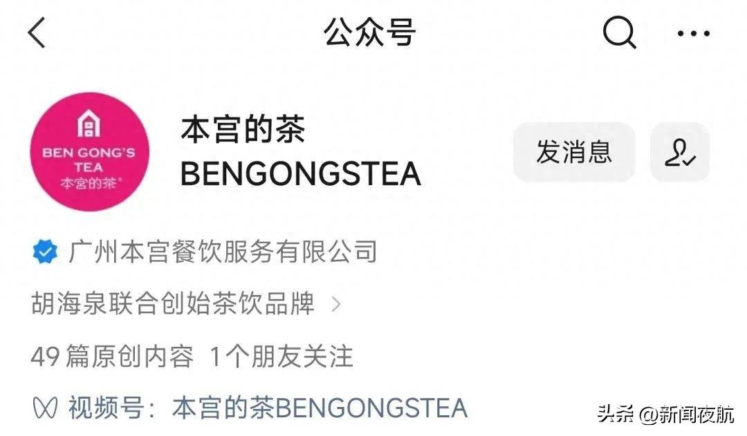 “本宫的茶”曾称胡海泉为品牌联合创始人