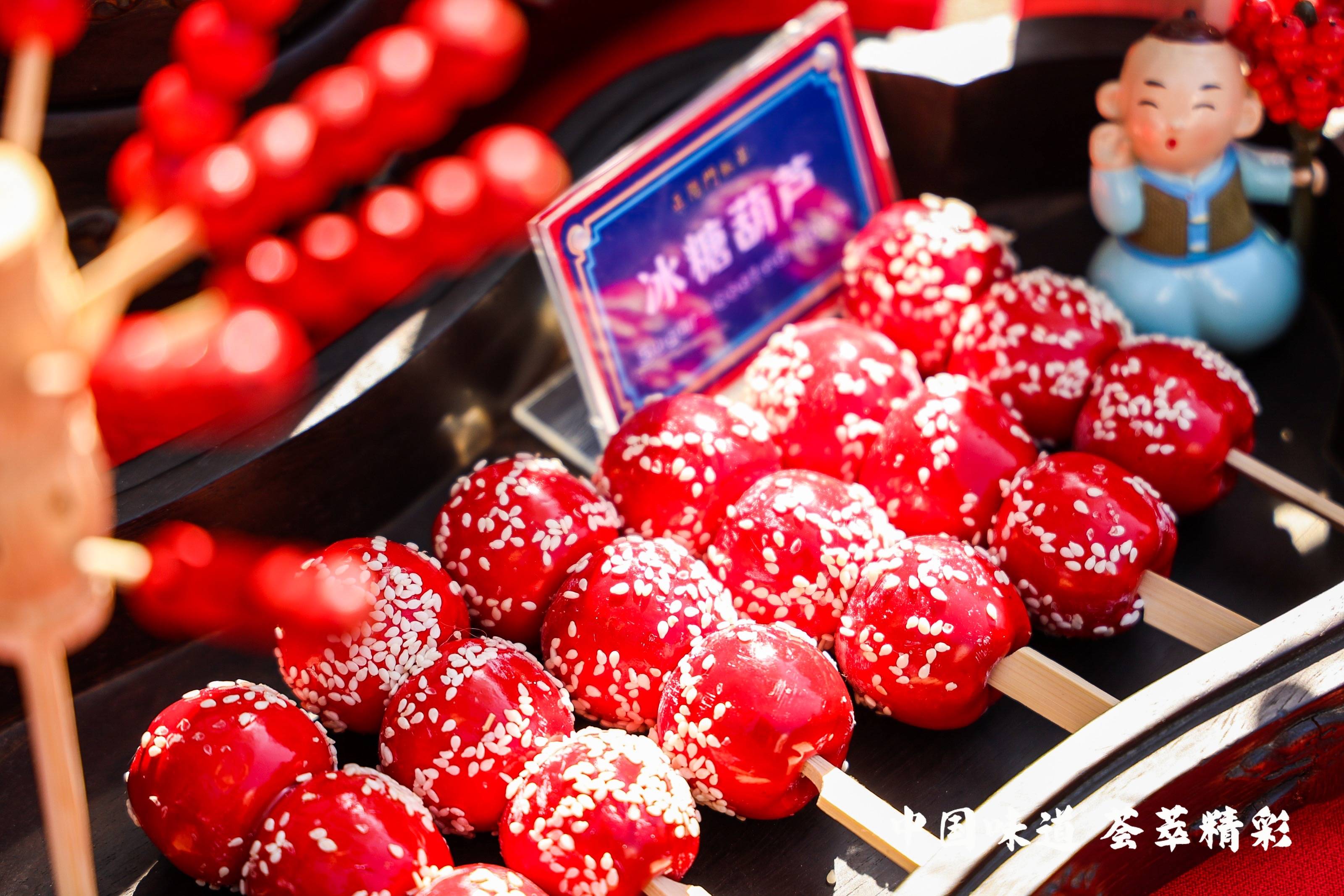 北京万丰小吃博物馆馆长、正阳门饭庄民俗顾问龙师傅展示了北京传统叫卖声,龙师傅还特别介绍了冰糖葫芦,他称正统的冰糖葫芦并非使用山楂,而是大红果,为了参加此次活动,他前一晚特地去北京郊区采摘了大红果。