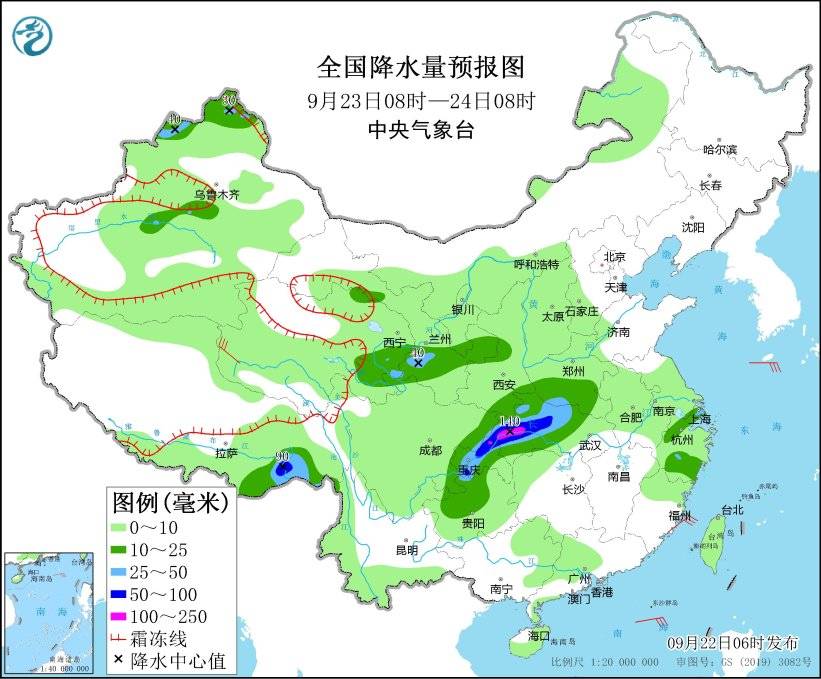 图1 全国降水量预报图(9月22日08时-23日08时)
