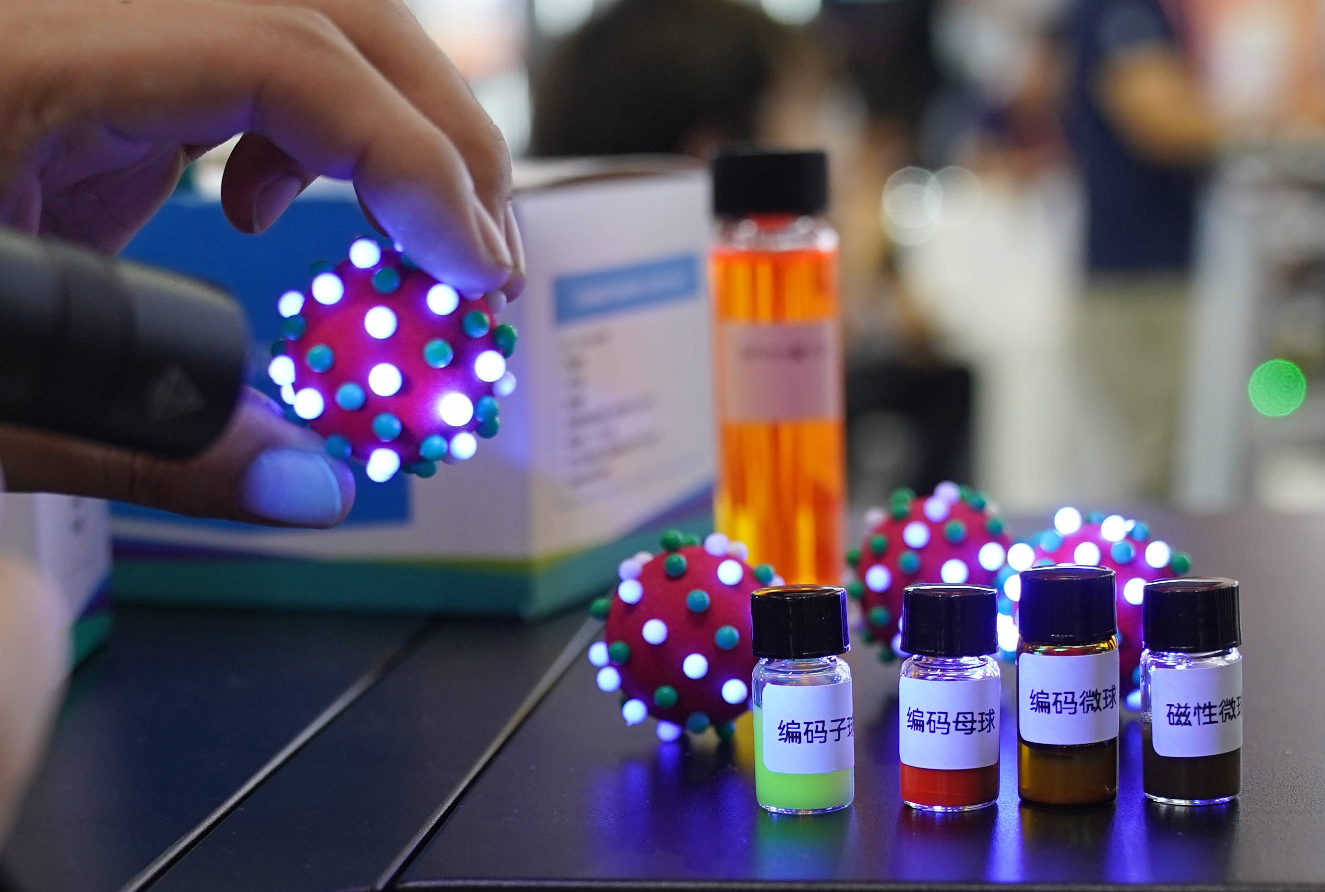 医学检验中,患者往往要抽五六管血,等一两天,乃至更久才能拿到检验结果。这一状况未来能否转变,可否只需几滴血,就能在一至两小时内完成数十项指标的精准检测?在上海交通大学展区,基于“液相芯片”的单管多指标检测技术,是实现上述愿景的一种有效手段,吸引不少人驻足了解。