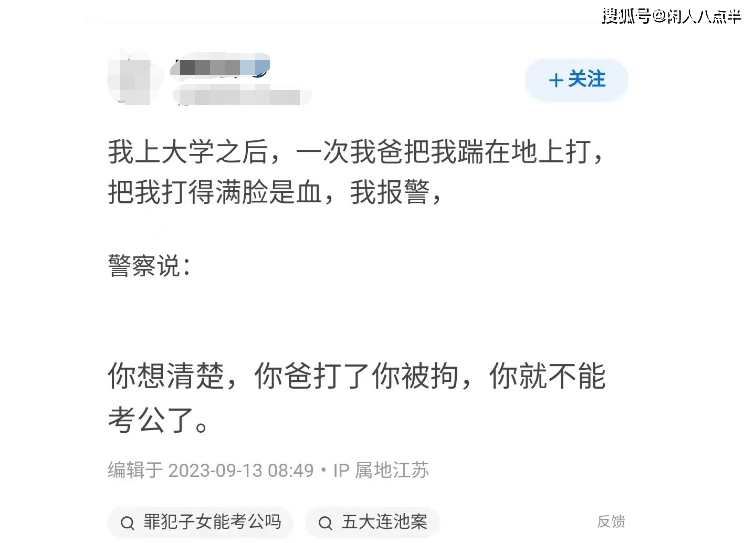 老子把儿子打了,儿子报警。警察说:你想清楚了。你爸被拘,影响你考公。
