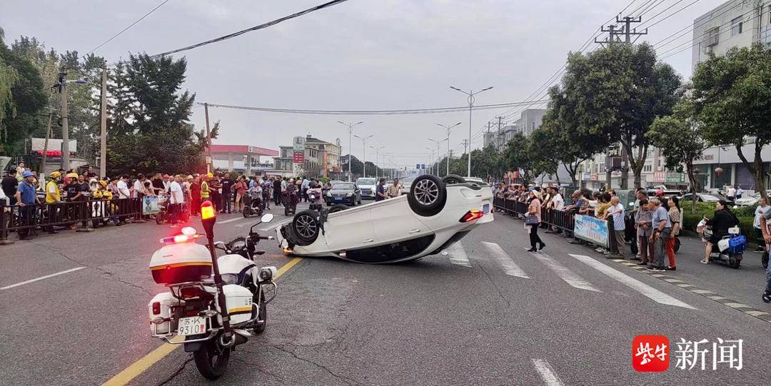 警方通报,19日17时许,27岁的男性驾驶员许某驾驶黑色奥迪车,从高邮市文游北路西侧加油站加完油,左转弯进入道路时,因疏于观察,与34岁女驾驶员刘某由北向南正常行驶的白色奔驰车发生碰撞。事故瞬间发生后,奔驰车侧翻腾空而起四轮朝天,奔驰车门被撞打开,所幸女司机系了安全带,人没有被抛出车外,但被困驾驶室。后经现场警民合力,成功将女子救出。