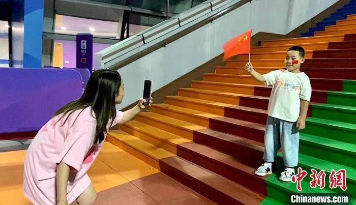 记者在现场看到,大量中国观众带着国旗观赛,为中国队加油。在绍兴经商的牟静带着儿子前来,“来给中国男排加油!儿子很爱体育运动,希望带他感受浓厚的亚运氛围。”