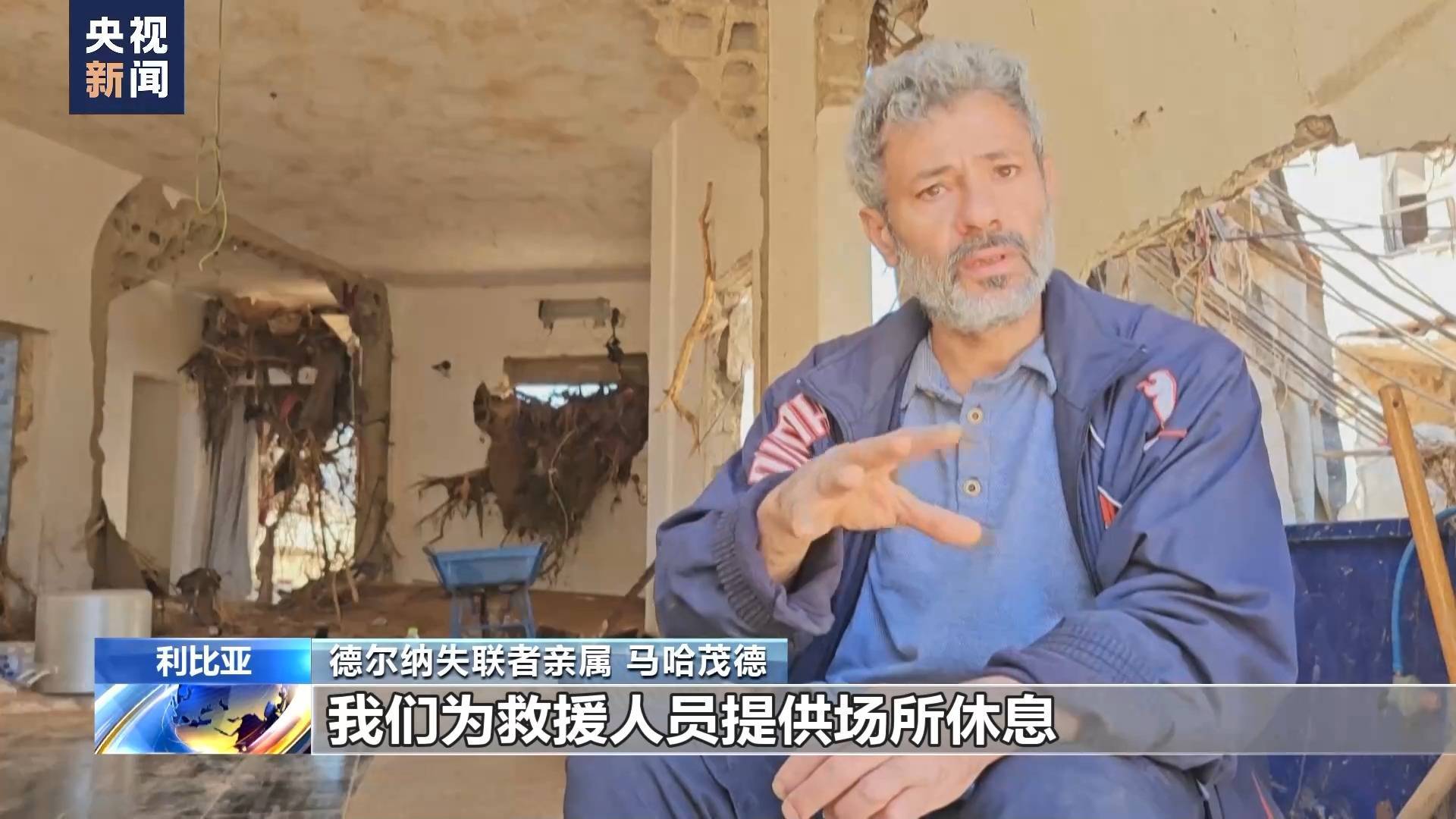 这里是重灾区德尔纳的一幢普通房屋,房主马哈茂德介绍,此次洪水来袭时,他侥幸躲过一劫,但他整个家族有近70名成员在这场洪水中失联。搜寻工作开始后,他主动为搜救人员提供饮用水和茶点,期待能够早日找到失联的亲属。马哈茂德表示,德尔纳大量建筑倒塌,泥沙淤积,挖掘能力不足,希望外界能够提供更多的专业搜救帮助。