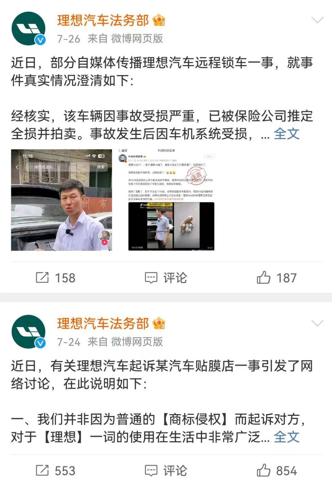 2023年以来,理想汽车、小鹏汽车、零跑汽车、蔚来等车企,先后开通了法务部官方微博,宣布起诉部分汽车自媒体。