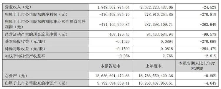 业绩方面,据鸿达兴业半年报披露,公司2023年上半年营业收入为19.49亿元,同比下降24.52%;归属于上市公司股东的净利润为-4.76亿元,同比盈转亏;基本每股收益为-0.1526元。