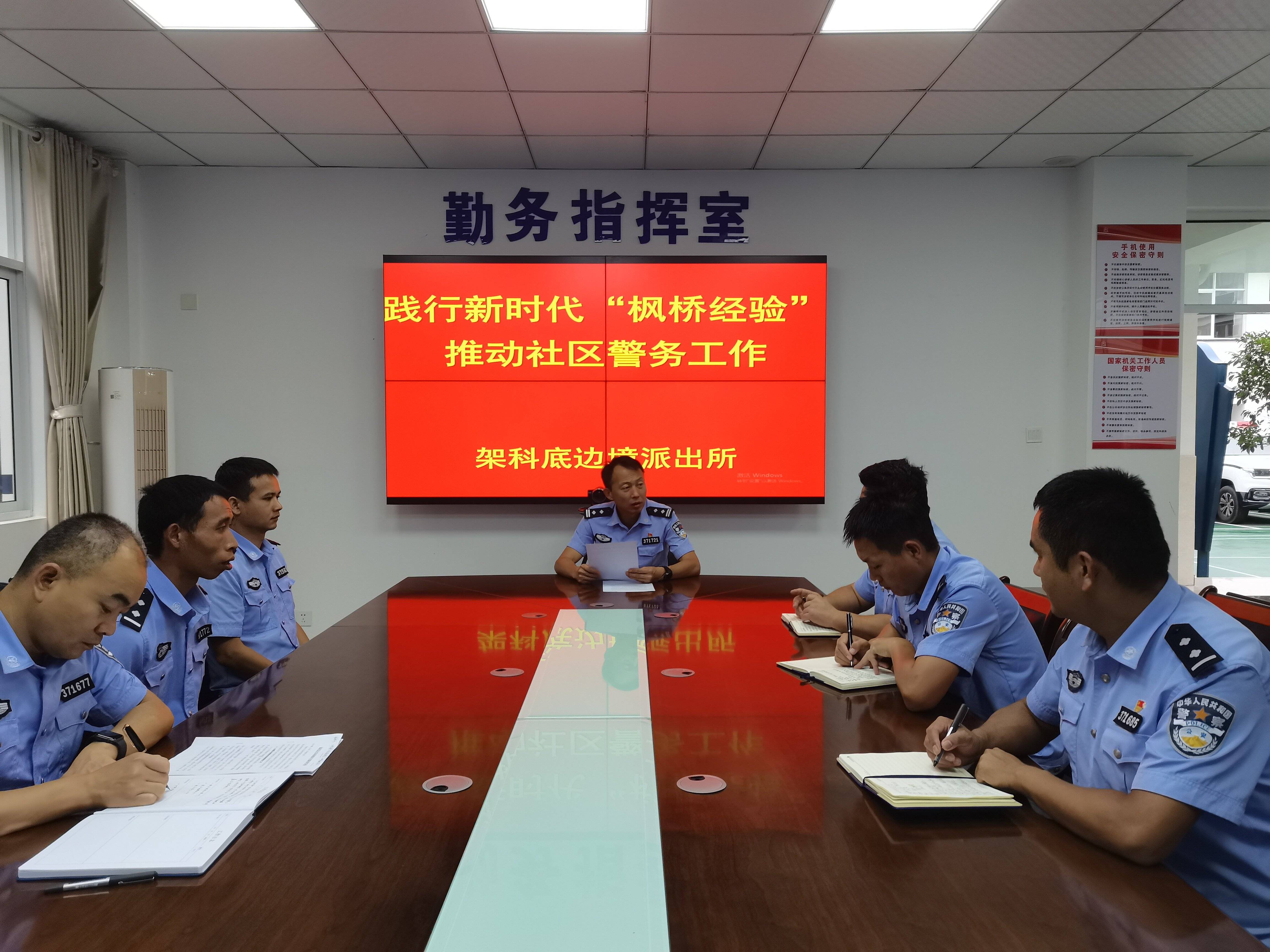 自矛盾纠纷化解工作开展以来,架科底边境派出所始终坚持以党建为引领,以警务机制改革为动力,以“枫桥式公安派出所”活动为载体,传承和发扬,强化打、防、管、控、服各项工作,全面夯实公安派出所基层基础工作,完善基层社会治理机制,全面提升基层治理水平,努力筑牢基层派出所业务工作,坚持“出事少、治安好、党和人民满意”为总体目标。