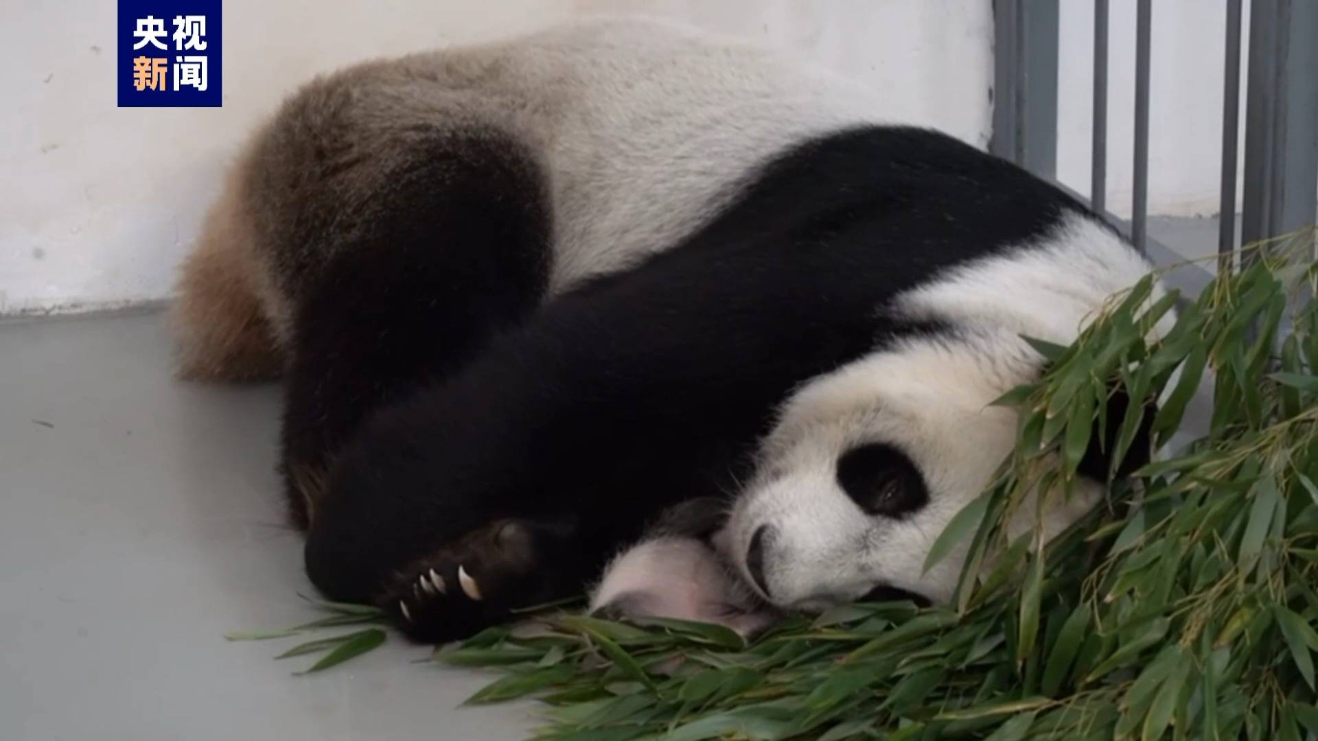 当地时间8月24日凌晨,旅俄大熊猫“丁丁”诞下幼崽。(总台记者 王斌)