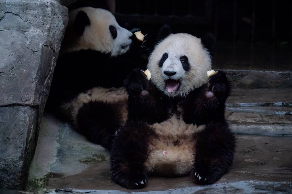 原标题:萌化了!大熊猫雨中“围炉煮茶”