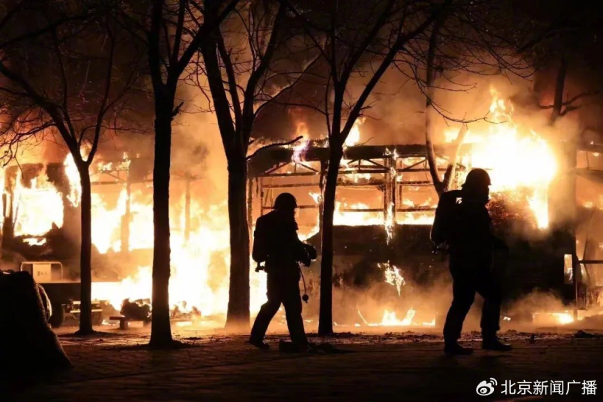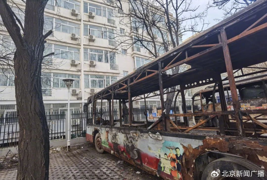 ?近日,记者再次回访中国传媒大学梆子井公寓外的快递站点,11月14日晚,这里此前存放快递的2架废旧大巴车,车体全部烧毁,只剩焦黑的框架,现在还能闻到烟熏味。