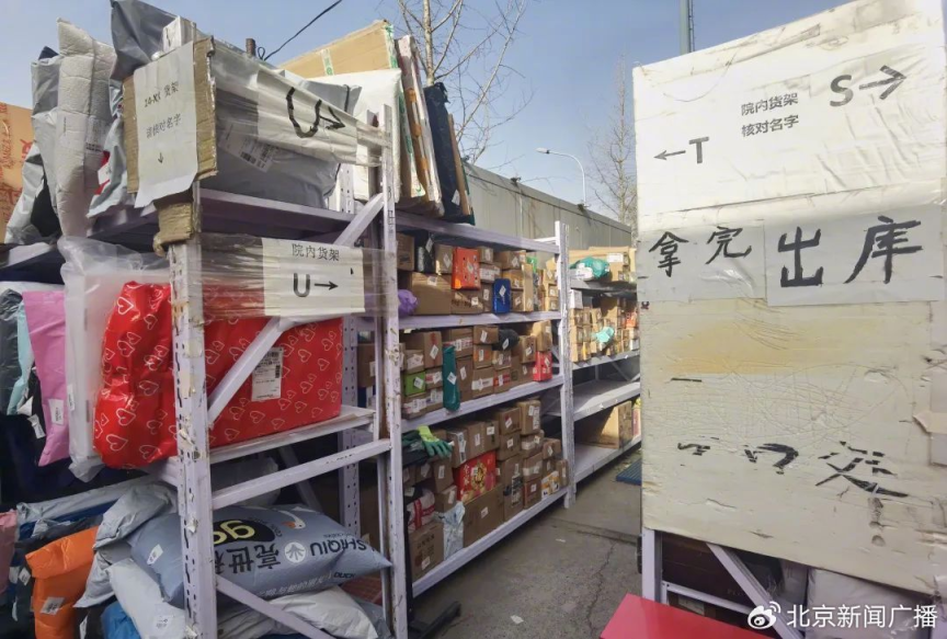 在北大畅春新园,一位学生向记者介绍:“畅春新园宿舍区都是往地下堆,燕园总的物流站南门快递站点是简易货架,高峰期没地方放,只能地面堆。畅春新园快递员虽然能进,但是柜子太少,无法容纳四栋楼的快件,每栋楼很大。”