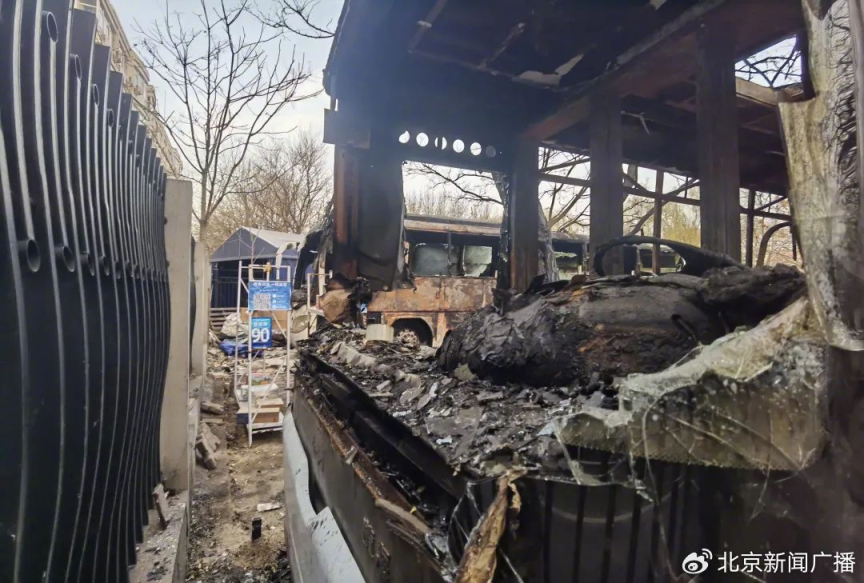 ?“大巴这一侧都焦了,两个铁皮车都烧穿了,一时搬不走。理赔大多已经基本完成,群里同学该赔的都赔了。事后一两天就把这里场地清出来,12月7日才把原来烧的废墟清理完。”