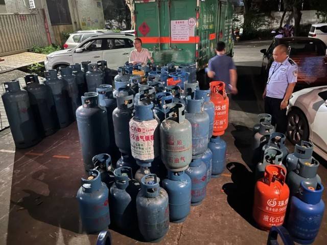 9月21日17时,坦洲镇城市建设和管理局执法人员在安阜社区三围街附近发现一集装箱内存放大量液化石油气瓶,立即联系镇消防救援大队、应急管理局等部门开展联合执法。