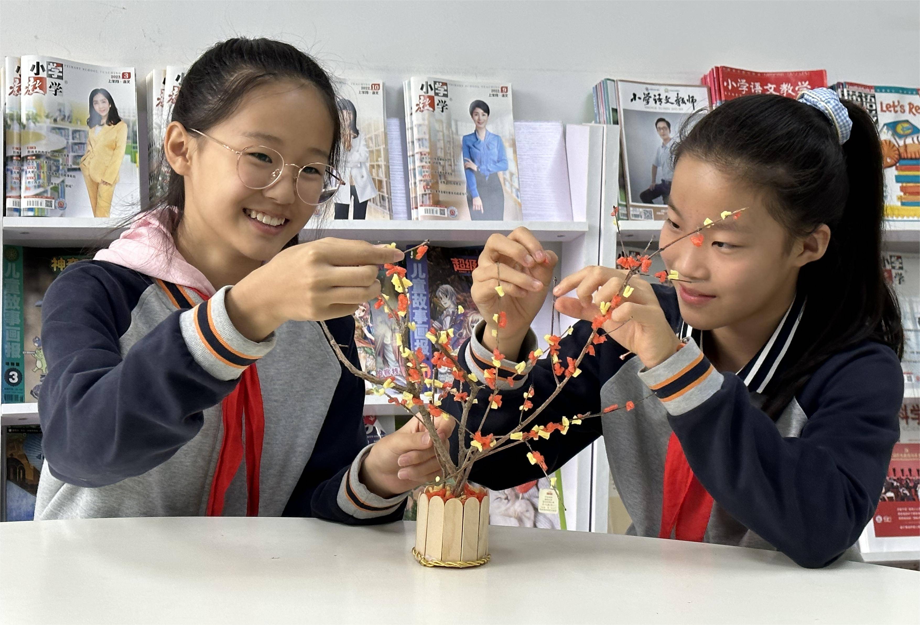 学生们结合所学知识进行了“巧手善思,变废为宝”手工制作活动,在生活中寻找废弃材料进行手工创作,用丰富的想象力和创造力,呈现了各种各样的作品:精美绝伦的玻璃花瓶、栩栩如生的梅花盆栽、可爱精巧的灯笼……