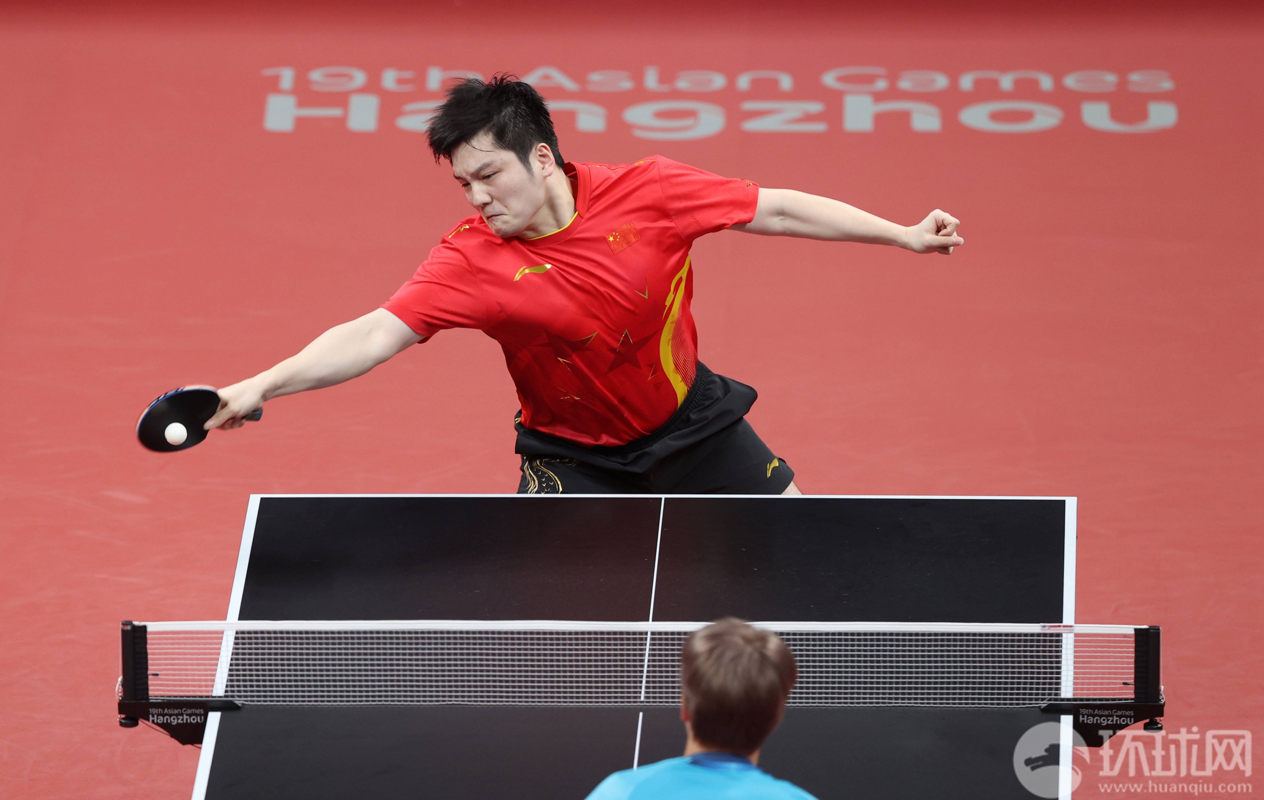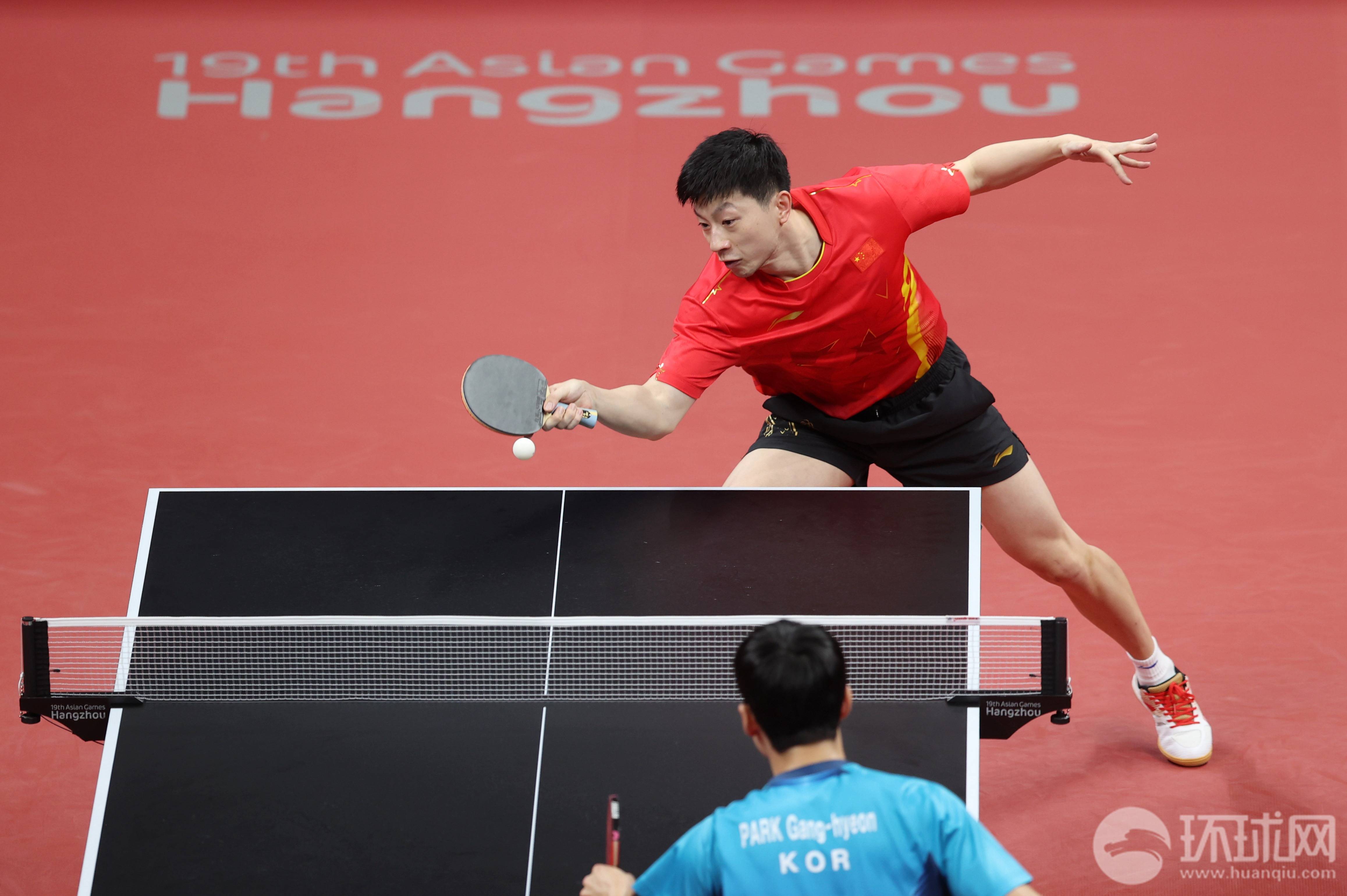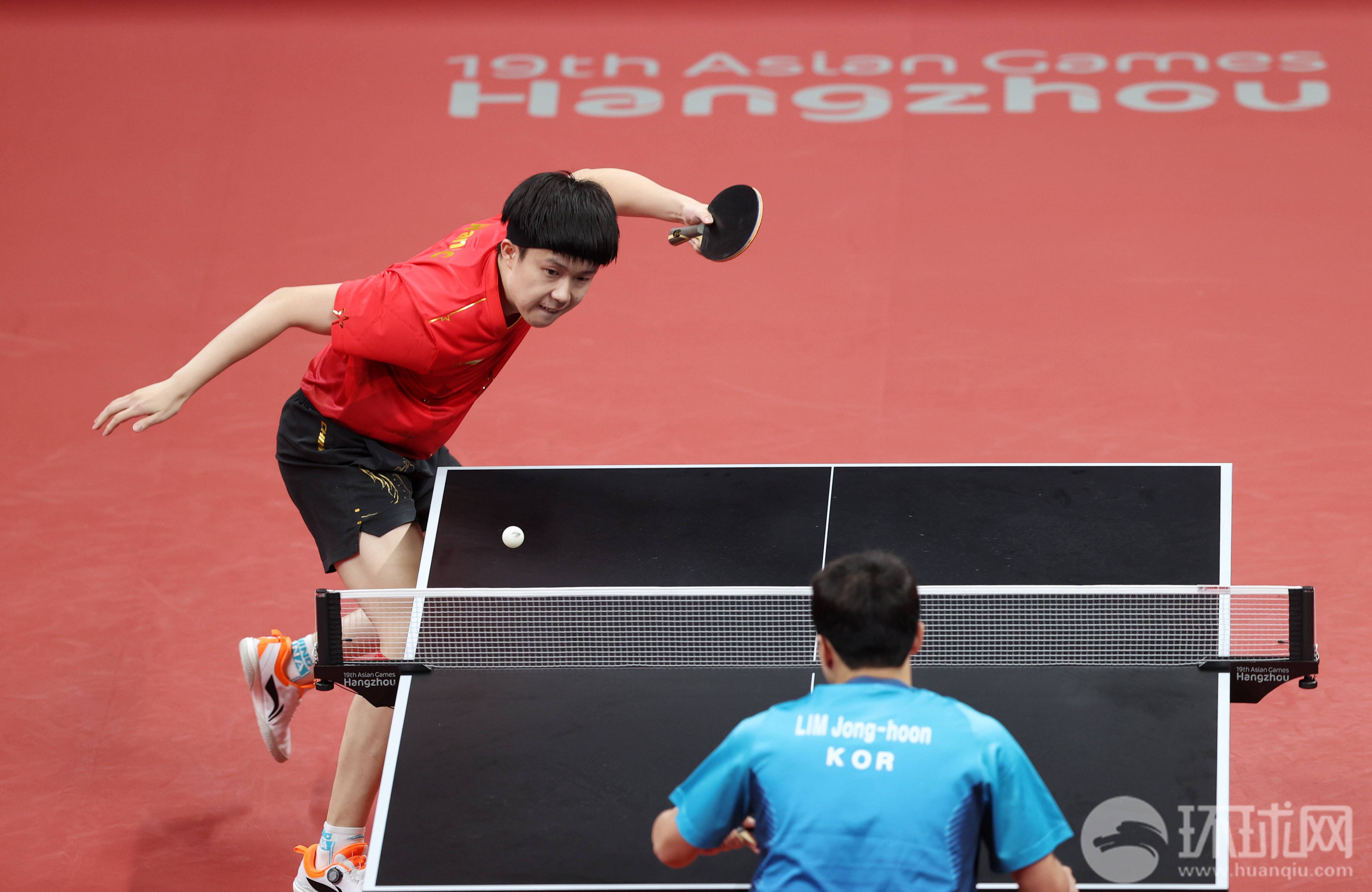 9月26日,杭州亚运会乒乓球男子团体决赛在拱墅运河体育公园体育馆进行。由王楚钦、樊振东和马龙组成的中国队以3-0击败由林钟勋、安宰贤和朴嫝贤组成的韩国队,取得八连冠。环球时报记者 崔萌摄