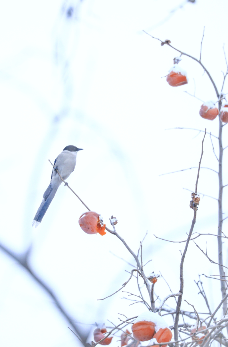 景山公园,火红的柿子挂在高高的树上,每一个柿子上都盖上了厚厚的白雪,鸟儿在枝头顾盼,犹如一幅美丽的画卷。黄爱仙摄
