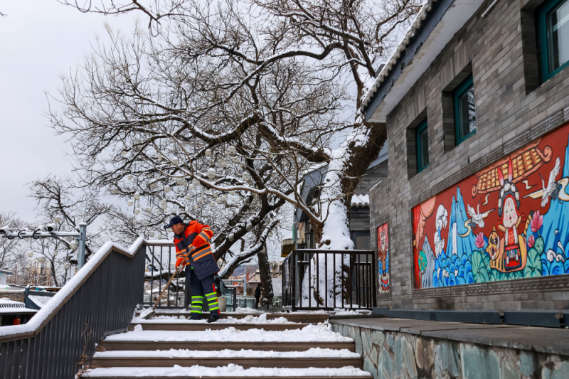 雪天出门的人,除了赏雪景的,还有不少环卫、交警、志愿者等,他们在城市的各个角落,积极应对,扫雪铲冰,为出行的人扫出一条安全的通道,用行动书写城市温度。