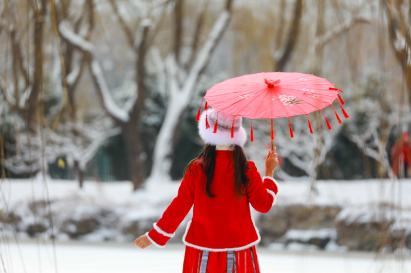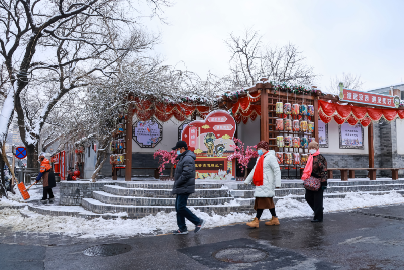 人们被纷飞的雪花吸引,纷纷走出家门,欣赏京城冬季独有的美景。