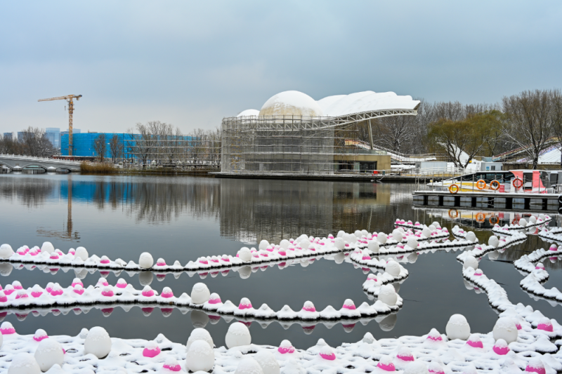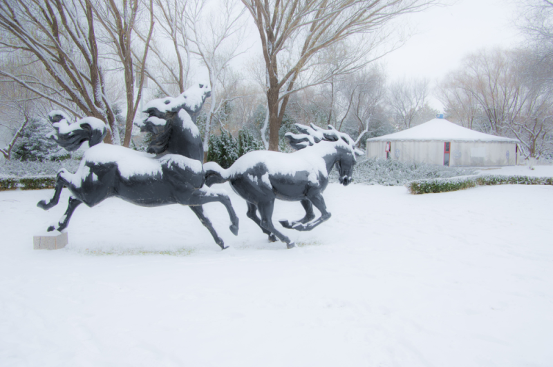 雪中的园博园,“骏马”迎雪奔腾。张颀摄