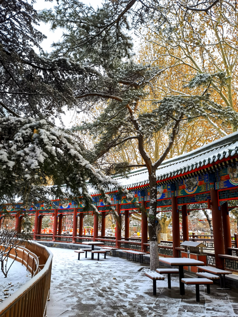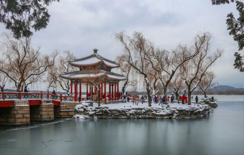 琼花飞舞,银装素裹,北京城美得如同一幅中国传统的丹青巨作。