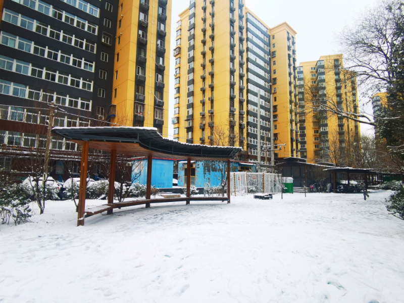 今年,苹果园2区小区经过改造,旧貌换新颜。改造后的小区休闲小广场被雪花簇拥,静谧美丽。李洪星摄