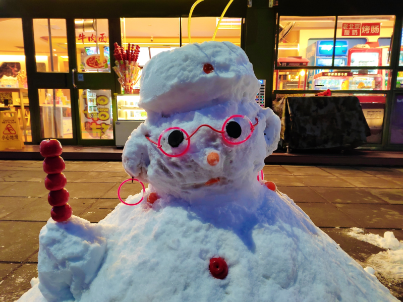 雪人:“朋友,一起来吃糖葫芦!”佟丽萍摄