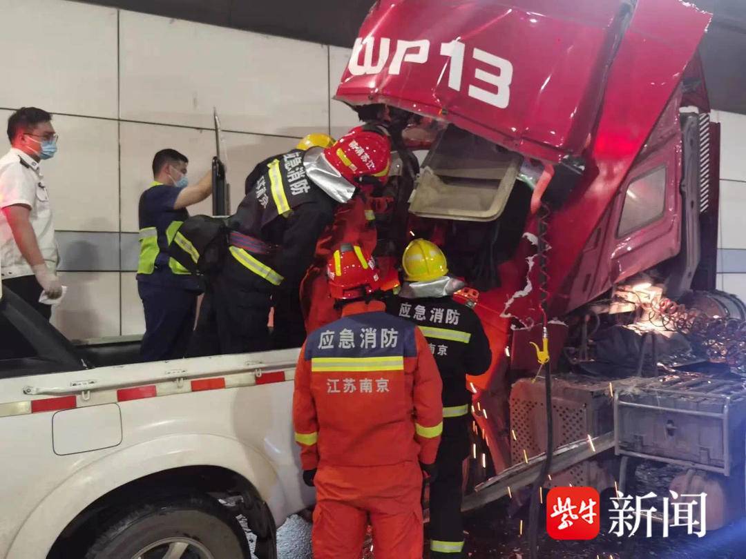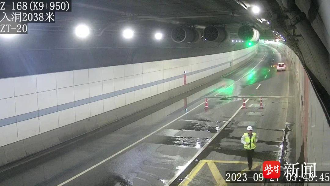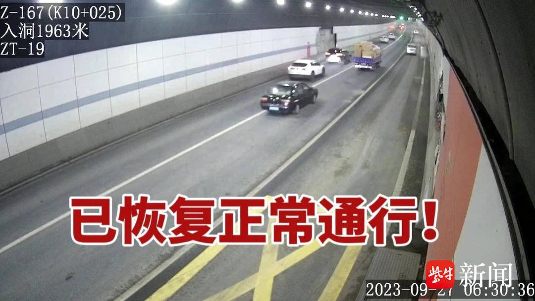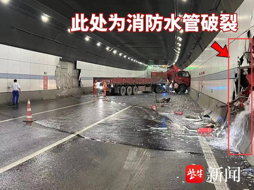 9月27日凌晨3时28分,南京交通运营管理集团所辖江心洲大桥夹江隧道出城方向一辆货车连续撞击隧道右侧及左侧边墙,横跨三股车道停在隧道中,导致交通中断。