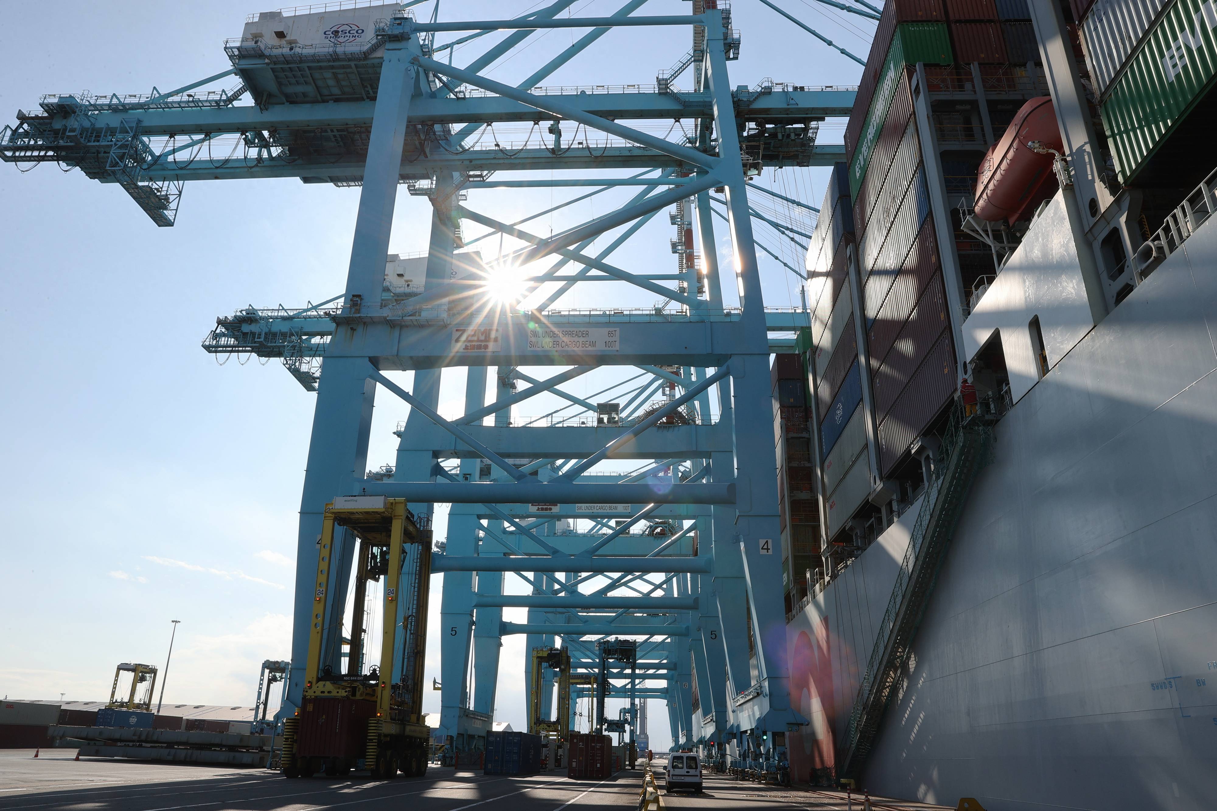 9月25日,在比利时安特卫普-布鲁日港中远海运(港口)泽布吕赫码头,工人驾驶跨运车作业。 新华社记者 赵丁喆 摄