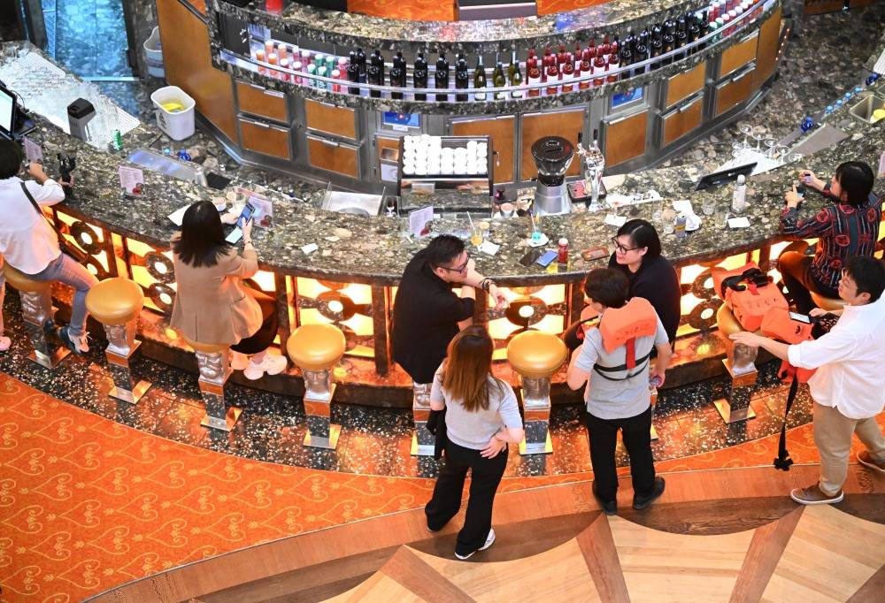 9月27日,游客在中国船舶集团旗下爱达邮轮“地中海”号邮轮上聊天。新华社记者赵子硕摄