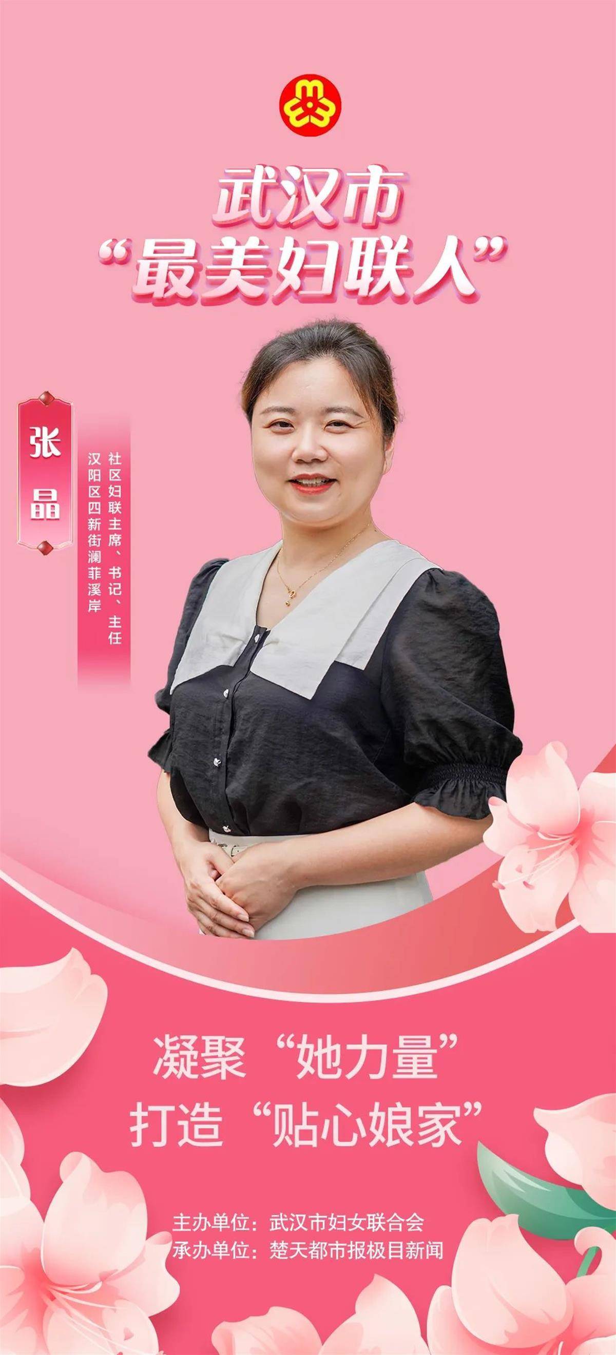 张晶是武汉市汉阳区四新街澜菲溪岸社区妇联主席、书记、主任。从事妇联工作以来,张晶立足实际,组建巾帼志愿者服务队、创新建设“行走中的妇女之家”,润物无声中,张晶以温暖为“港湾”,给予每个需要关怀的姐妹安全感。