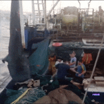 很快有网友查询到涉事船只,目前停在浙江附近的海域,说明伤害鲸鲨也是出现在该区域。浙江海警局工作人员也证实了,当事船只已被控制,打砸鲸鲨的船员也在船上,涉事渔船和人员都已控制,目前案件正在办理中。