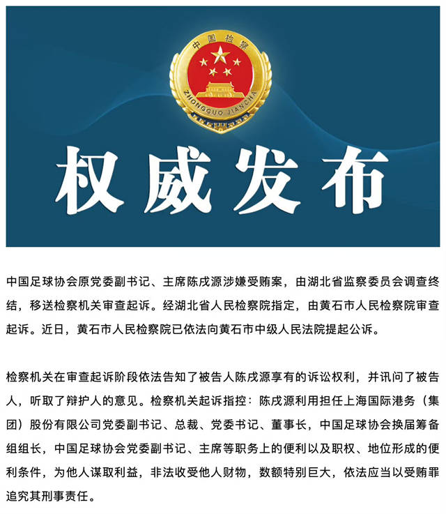 而在足协新班子成立前,陈戌源已经被起公诉,对于他究竟拿了多少钱也将有正式结论,坊间传闻他收了30亿,此人良心被狗吃了哪怕是千刀万剐也不足以平民愤,如果他能够把这笔钱投入到青训事业中去,我们的足球水平至少能够上一个层次,但这却被用于满足他个人的物质贪欲,最终毁了中国足球也毁了他自己,实在是一场悲剧!