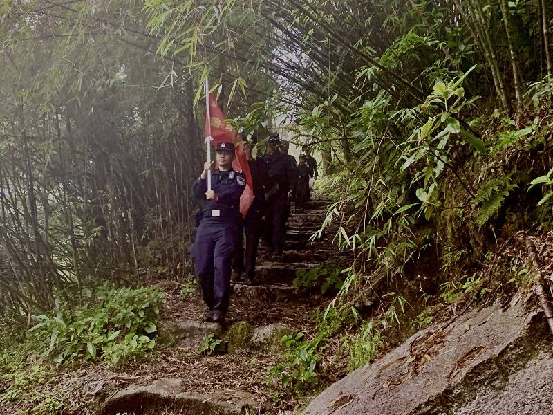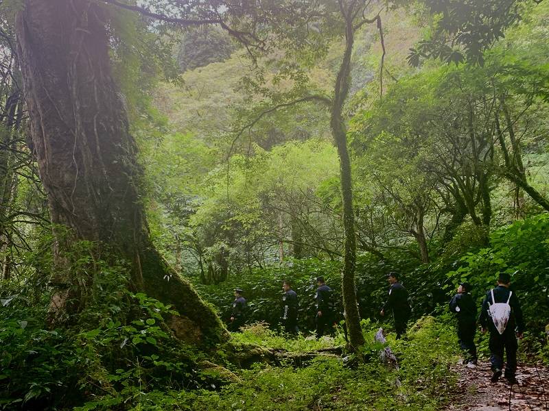 到达风雪丫口后,巡查队全体成员迅速穿戴好单警装备、携带好充足的饮用水和口粮之后,上午9时许从风雪丫口出发沿风雪丫口至老营房遗址便道,全程12公里。此次活动以亲近自然愉悦身心、巡边固防、推动节日安保工作顺利开展为主要目的,同时兼顾高黎贡山生物多样性保护、道路安全隐患排查等多重目的。