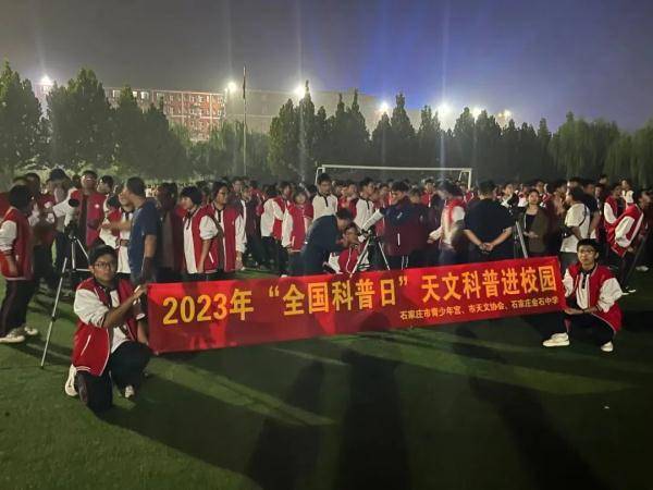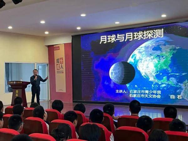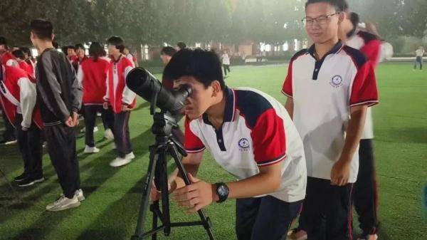 9月27日,由市青少年宫、市天文爱好者协会组成的专家团队一行数人走进金石中学,为学生们进行了有关天文、航天科普知识的讲座。夜幕降临,一轮凸月高挂,六架望远镜在操场上一字排开,学生们有序地排队观月,实现了人生第一次的与月球的近距离接触!