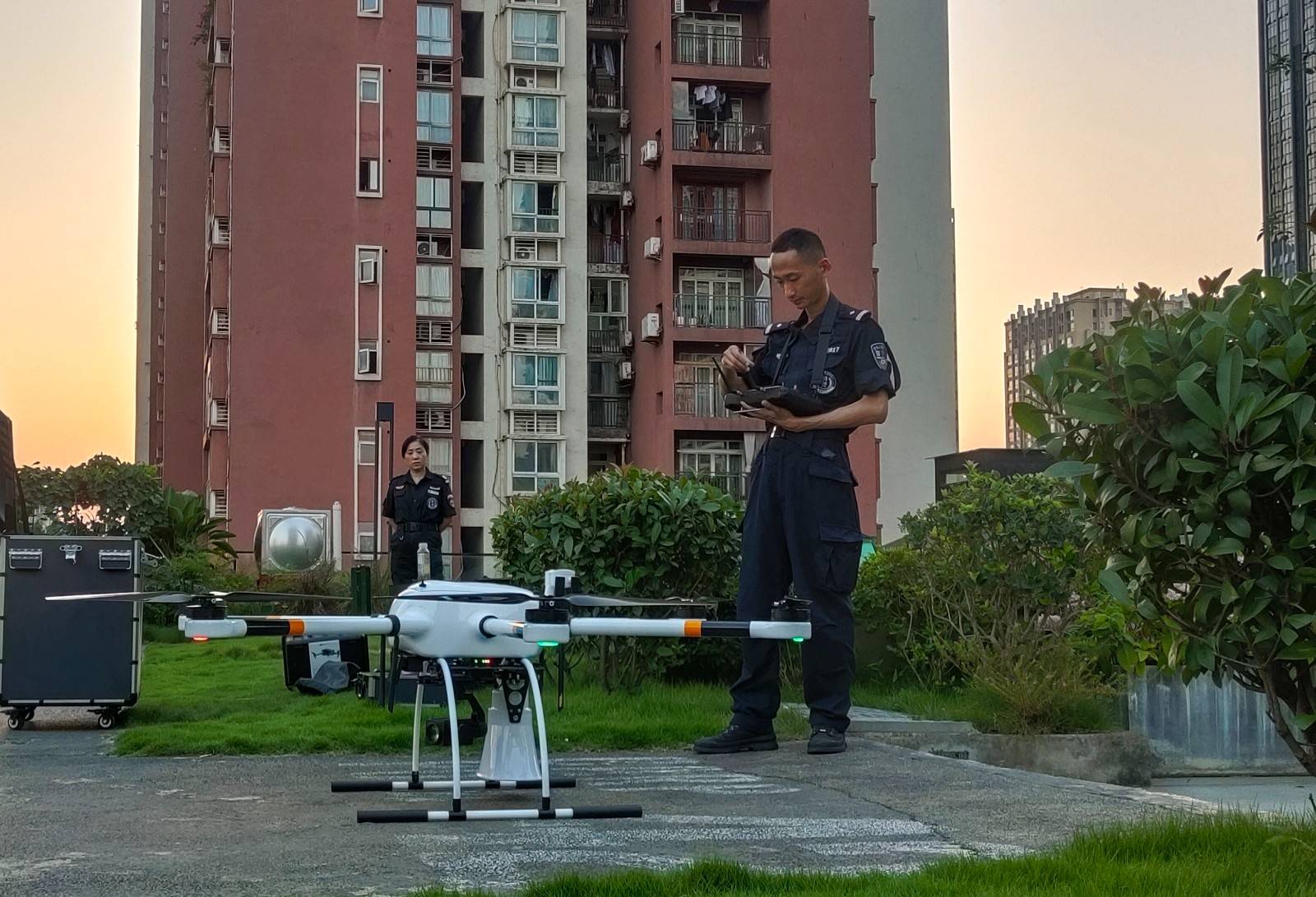 为不断加强反诈宣传工作,江北公安强化科技赋能,创新打造以天上无人机进行广播宣传,地上反诈民警补充加强的“空地联动”反诈宣传新模式。警用无人机利用高空飞行的优势,将喇叭搭载于无人机上,起飞后就能有效形成范围广阔的“立体式”宣传区。